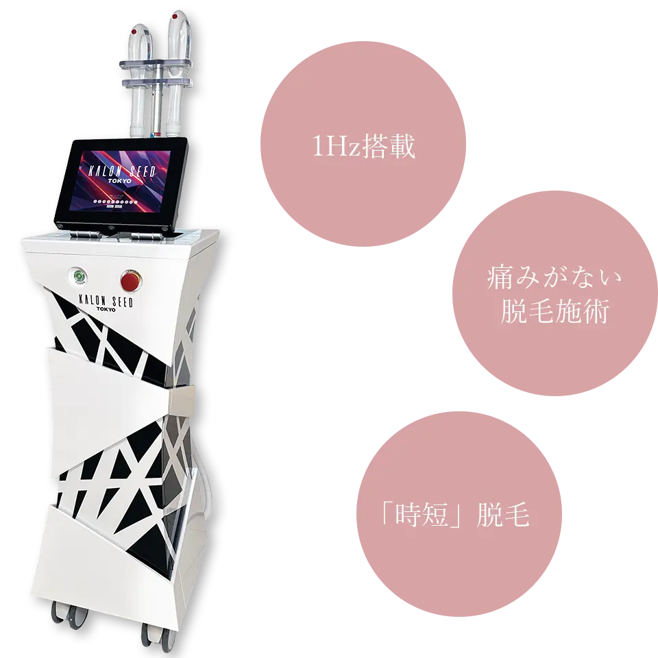 当院のIPL蓄熱式脱毛機「KALON SEED」は、毛質や色を問わず幅広く対応できる脱毛機です。